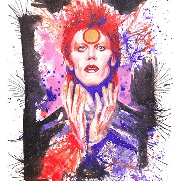 Water color portraits of you + your pets + your loved ones in Outer Space painted live at special events or from photograph by commission.